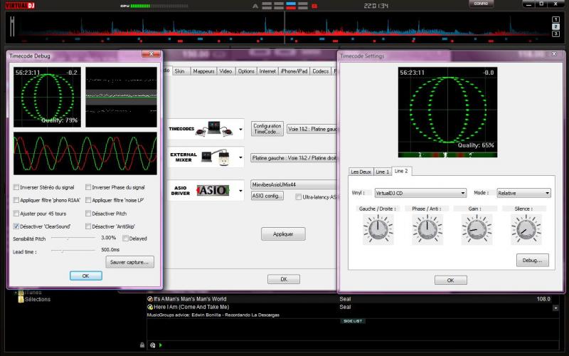 j'ai réussi à mettre à l'intérieur de carré le cercle (oeil) comme explique dans config timecode.j'arrive pas à enlever les grésillements même en cochant "RIAA phono filter" et "noise LP filter" et la qualité timecode 100% varie,ne reste pas du tout stable