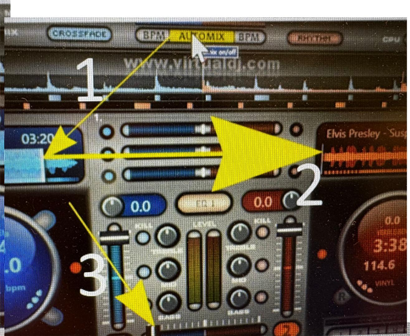 At position 03:20; I pressed Automix, an then the song should immediately start smoothly on Deck B!
