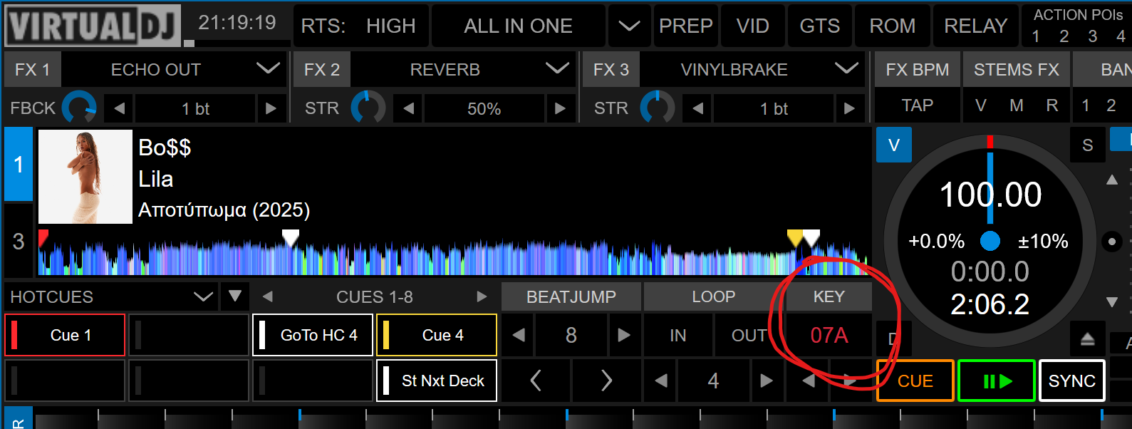 Also if you click the "KEY" label you can toggle the key display between Camelot and Musical display: