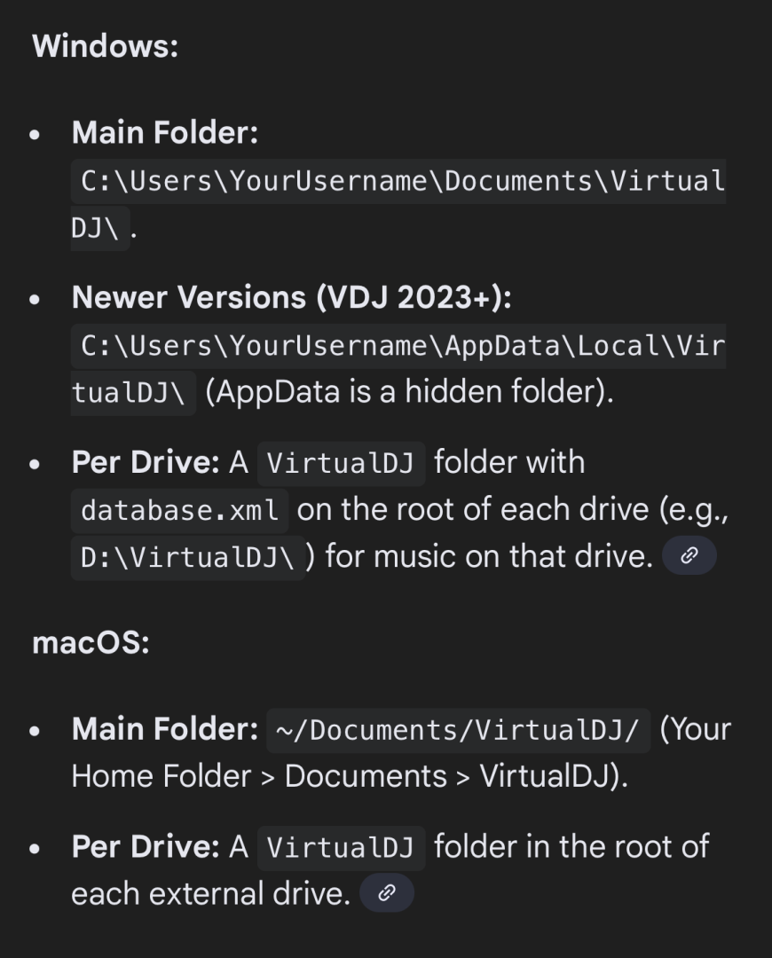 Por isso, mais uma vez, sugiro a manutenção da biblioteca em um HD externo formatado em exFAT assim pode ser plugado tanto em Mac quanto PC e ser lido pelo Virtual DJ. O único cuidado nesse caso é a necessidade de um backup de rotina pra não perder suas músicas em caso de defeito no HD. Faço isso e me evita muita dor de cabeça pois trabalho com os dois sistemas operacionais.