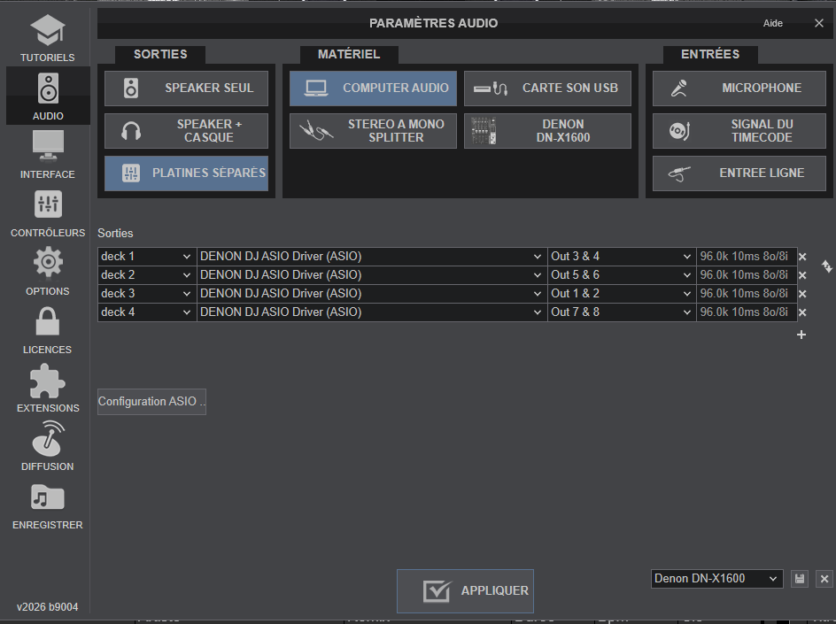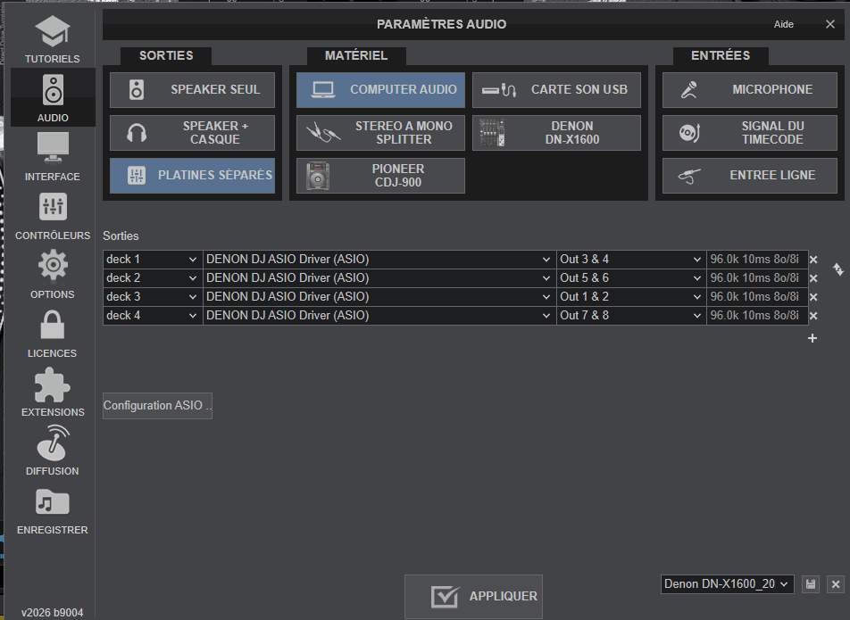 Quand j'ouvre VDJ j'ai soit ordinateur ou mixer cdj X-1600.