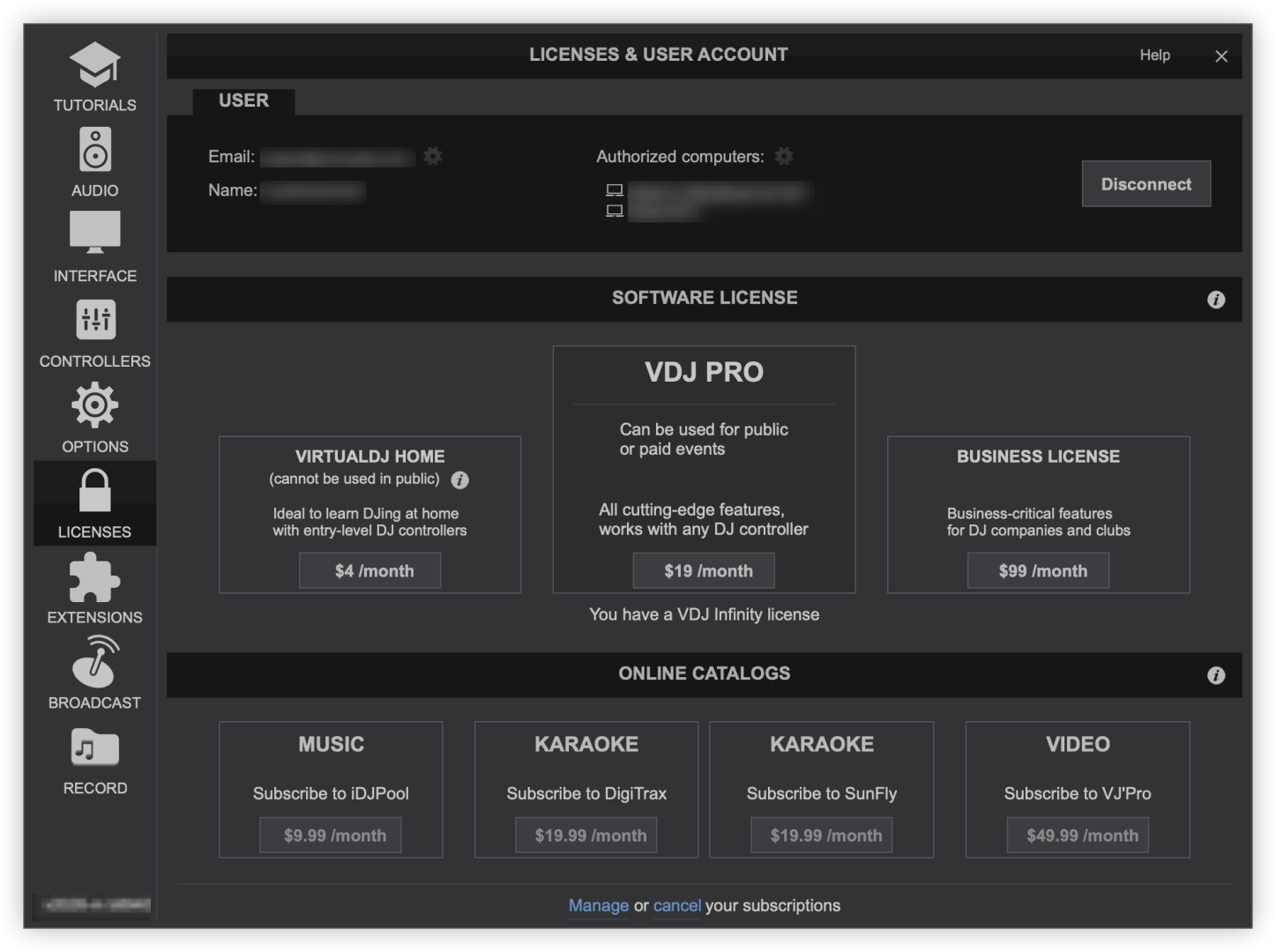 - VDJ Pro License - provides full access to all the features of the software (monthly subscription)