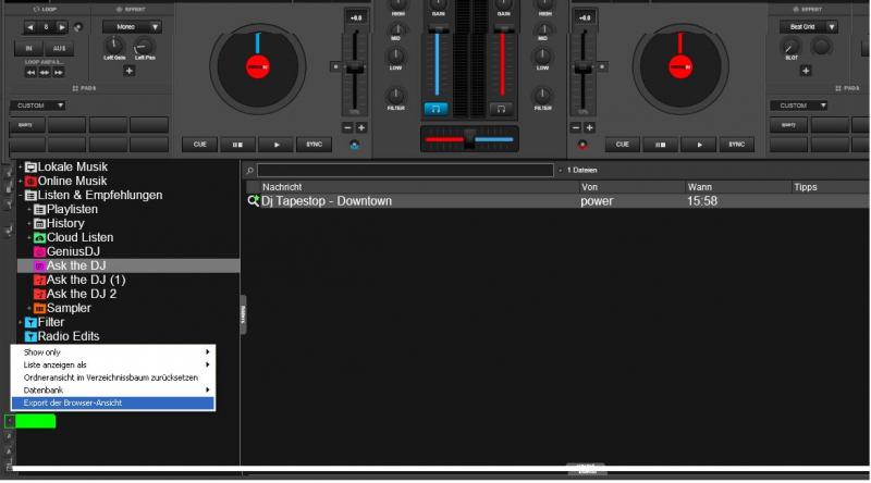 Frag den DJ ist eine Online-Funktion, die Ihrem Publikum erlaubt, Anfragen und Kommentare über jedes Gerät an den DJ zu senden, das einen Webbrowser öffnen kann. Wenn Sie bei Ihren Computer über eine aktive Internetverbindung verfügen, werden die Ergebnisse im Ordner Listen und Empfehlungen unter dem Ordner "Ask the DJ" im Ordnermenü von VirtualDJ angezeigt. Die Nachricht, der Name der Person (falls mitgesendet) und die Uhrzeit der Nachricht wird dann dort im Ordner angezeigt.