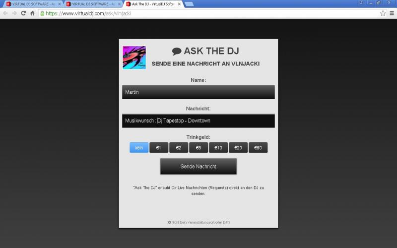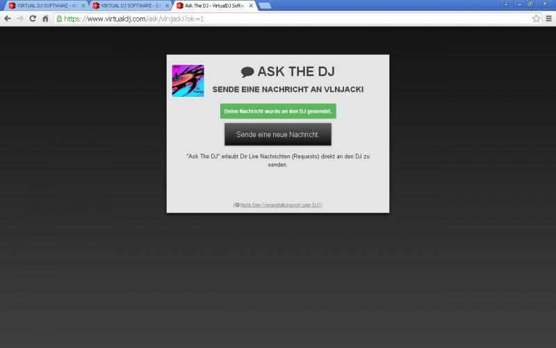 Wie das aussieht wenn jemand über den PC bei Ask the DJ eine Anfrage als Musikwunsch an mich (vlnjacki) stellt seht ihr hier,auf dem Bild:
