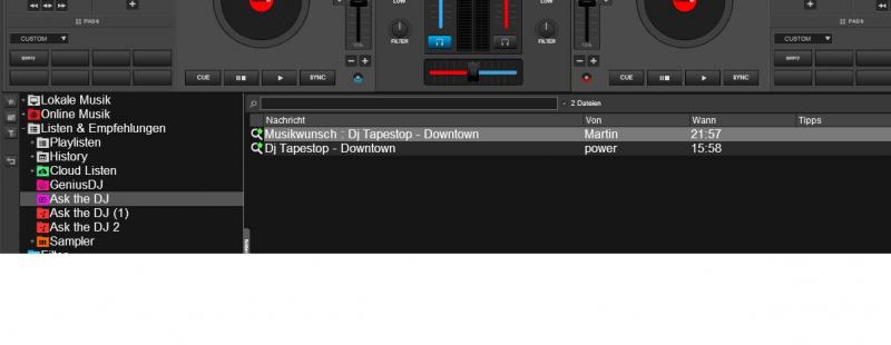 In der VDJ 8 Software sieht die angekommende Anfrage des Musikwunsches von Martin