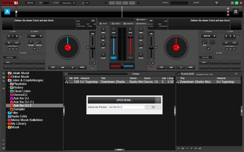 Im 2.Virtuellen Ordner habe ich dann vom der Anfrage aus dem nachgeschlagenden Suchergebniss her direkt den Titel in den Virtuellen Ordner verschoben,der bleibt auch drin,allerdings ohne Anfragedatum,also der ganz normale Titel /Track eben aus der Datenbank,den man auch in das Deck laden würde.