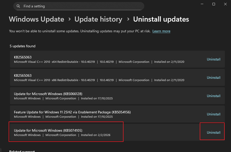 Note that uninstalling this update will not put your computer at risk, as it has been confirmed from many other users.