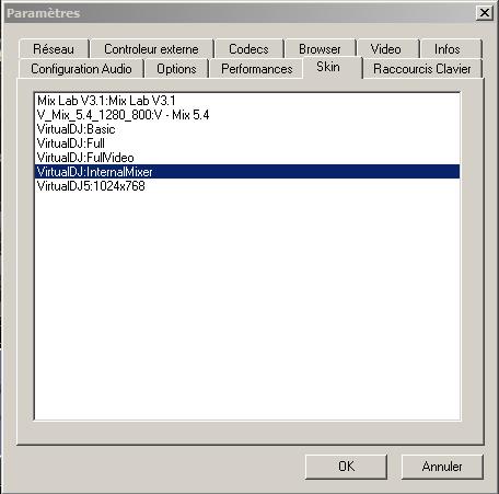 Voici l'écran de Config avec les Skins par défaut ,