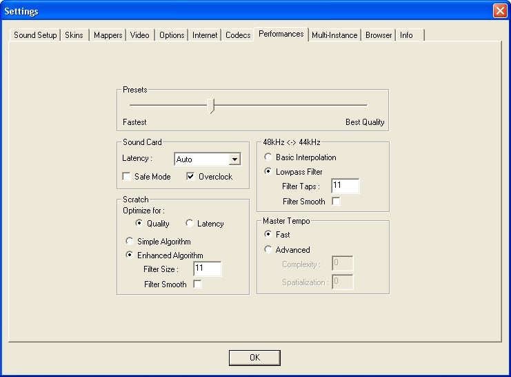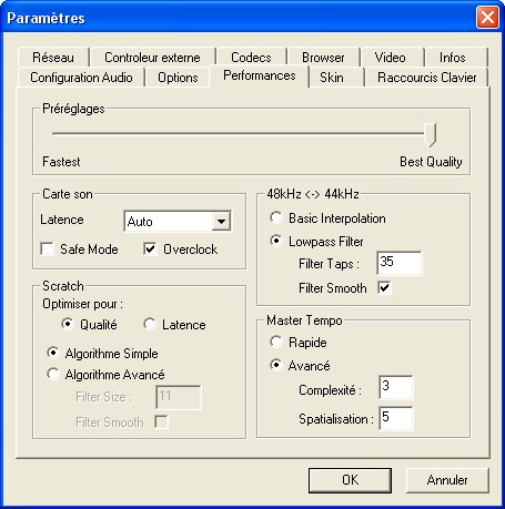 Quand tu mets sur optimal par défaut et le master tempo est activé ça ralenti énormément ta machine.