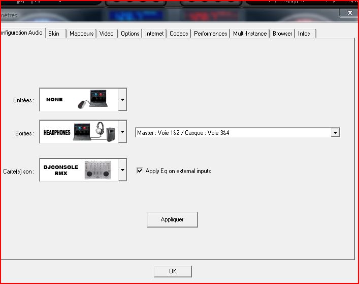 J\' ai un petit souci, alors que je mixe depuis pas mal de temps avec la version 6.01 j\'ai depuis deux jours des accrochages son sur les enceintes !!! Cela fait suis à une modif de paramétrages afin d\'essayer le mix de clip video. J\'avais du descendre pour l\'occasion la qualité son dans VDJ. Voici le paramétrage actuel (sachant que la semaine dernière j'avais encore la qualité son vdj max sans aucun accro)!!!! pouvez vous m\'aider à retrouver la pleinitude???