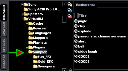 pour rentrée un sample sur un Deck il faut passer par le Browser de gauche, pour chercher les Samples.