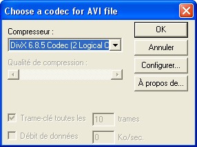 Je désire enregistrer mon montage en avi et les codec avi, dans la config est présente.