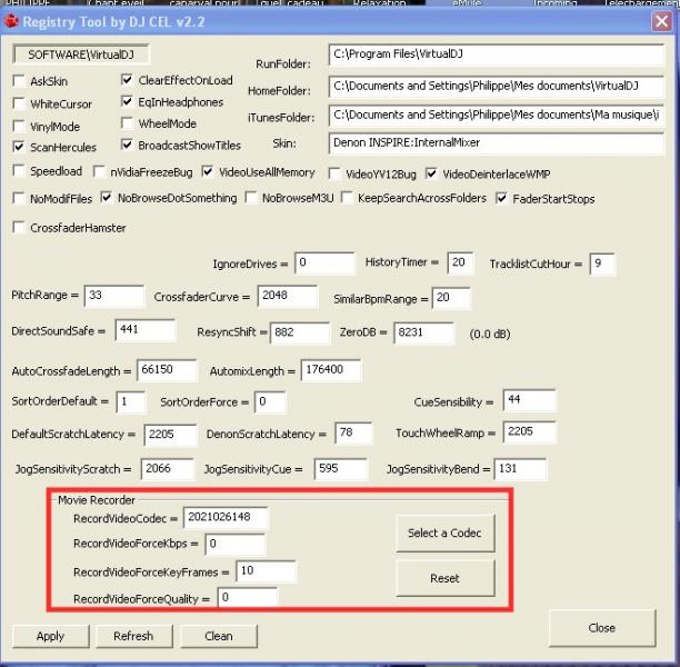 télécharge le tools de djcel et regarde si tu as les mêmes parametrage dans la partie Movie Recorder
