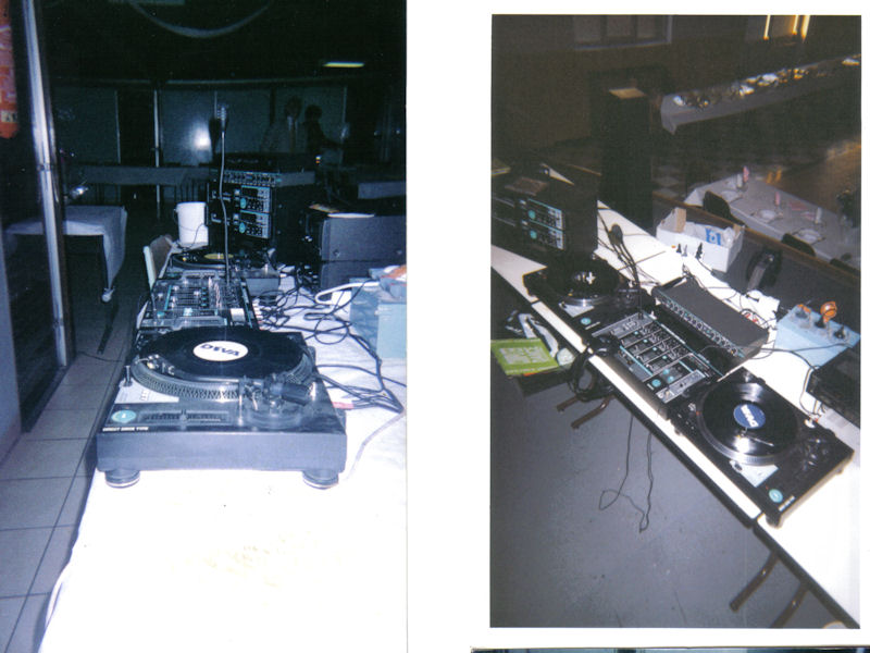 J'ai également mixé avec toutes sortes de matériels : technics (vinyl), american audio, hercules dj console 1, berhinger DJX700, xp10, numark et maintenant pioneer.