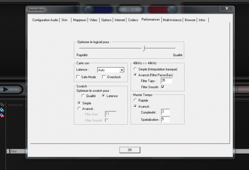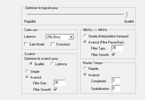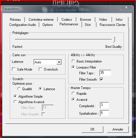 Bonsoir je viens d\\\'installer VDJ sur mon nouveau pc fixe (carateristique ci dessous). Dans l\\\'onglet performance j\\\'ai voulu mettre les mêmes bases que le portable (Toshiba satellite), hors je constate qu\\\'avec les mêmes bases l\\\'onglet qualité n\\\'est pas au maximum !!! Est ce normal ?