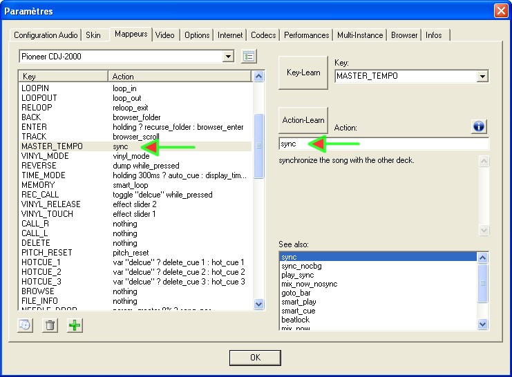 ou le bouton master tempo dit aussi key_lock (en remplaçant l'action master_tempo par l'action Sync dans la Mappeur)