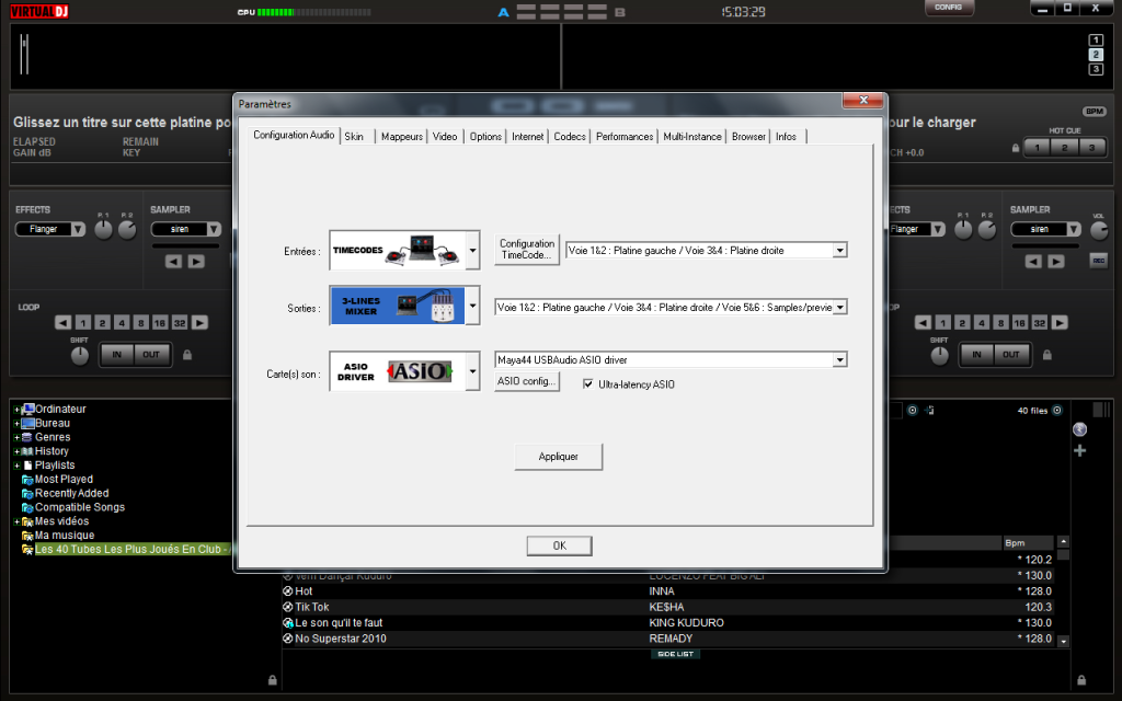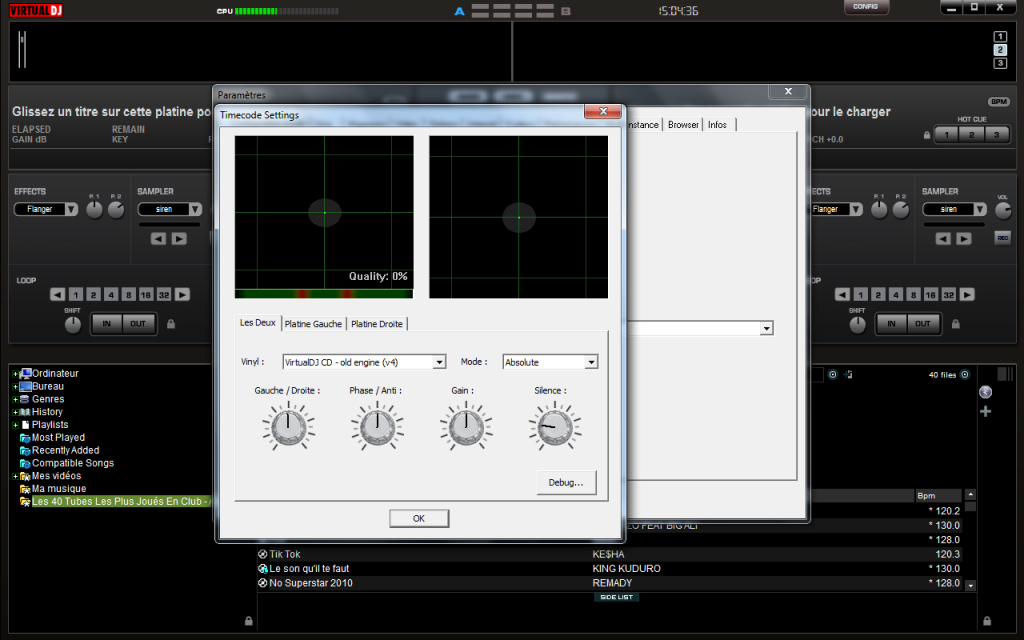 Par contre , toujours pareil , quand j'essai avec les differents reglages pour faire marcher le timecode , quand j'envoi le CD , les lumieres vertes de ma MAYA s'allume , le signal passe , mais je ne le vois pas sur le reglage de VDJ .