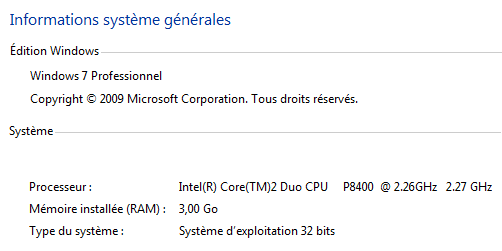 Ainsi que ta configuration informatique (Processeur, Disque Dur, RAM, Système d'exploitation)