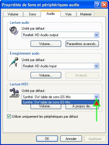 Allez sélectionner votre clavier Edirol pcr m30 comme il est indiqué en image.
