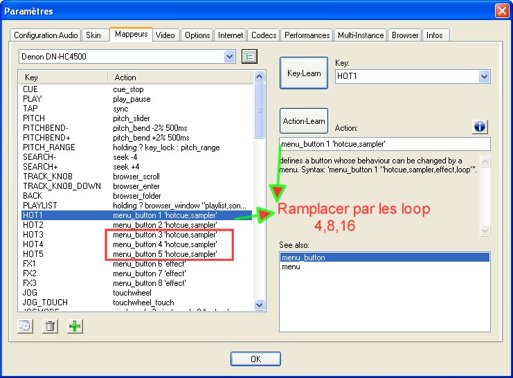- Comment assigner les LOOP aux boutons 1,2,3 .... du denon hc4500 qui par défaut active les CUE !