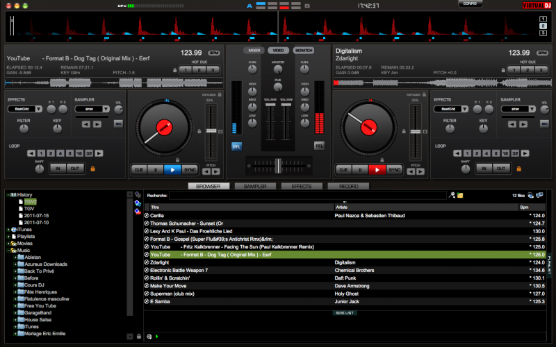 Comme vous le voyez sur la copie écran, j'ai un petit soucis sur quelques morceaux que j'ai dans mon mac lorsque j'utilise VDJ. En effet, certains d'entre eux ne sortent que sur une oreille ( lorsque l'on a le casque). Je me suis rendu compte que tous les morceaux avec lesquels j'avais ce soucis n'avait pas les 2 barres au dessus de PFL( comme sur ma platine droite) mais seulement 1 ( comme sur ma platine de gauche).