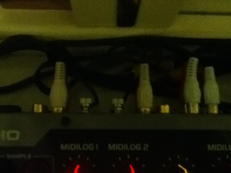 Then in this one you can see where my RCAs are plugged in. The two on the very left are the master out and the booth out so ignore those. Then on both sides of the grounds you have where the RCA from the turntables are. Then you can't see it by the picture but the switch is on phono.