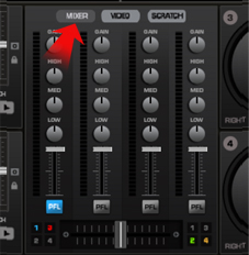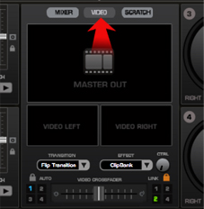 Slide the crossfader to the opposite side of the video playing BUT you must have the AUDIO VIDEO AUDIO/VIDEO button above the crossfader selected to just VIDEO