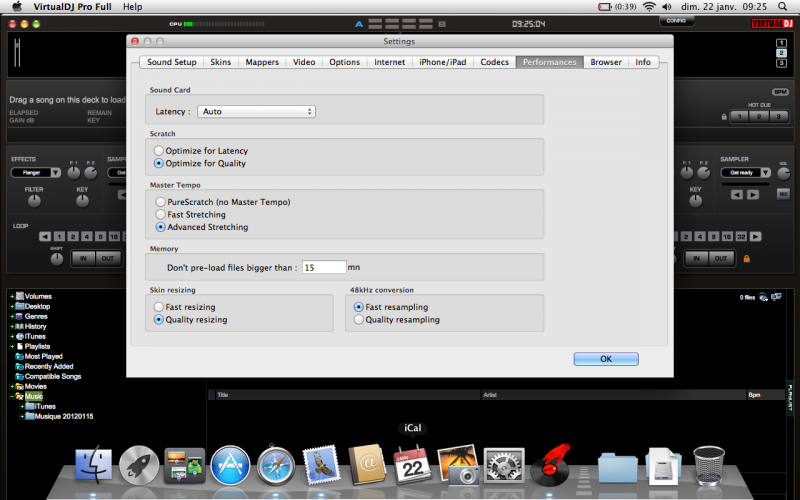 Dans la partie Codecs, change le codec MP3 et utilise le codec QuickTime, plus performant que celui de VDJ. ;)