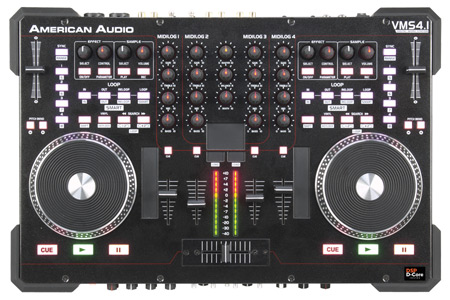 The American Audio VMS4.1 is a 4-Channel Midi Controller that comes bundled with Virtual DJ LE software. The VMS4.1 features four MIDILOG™ Channels (compatible with any “MIDI Software”* or Analog Inputs - such as CD Players, Turntables, etc.), two microphone inputs, Balanced XLR outputs, a 4 In/4 Out Sound Card built-in, and comes with American Audio’s exclusive “DSP D-Core” Audio Engine inside.