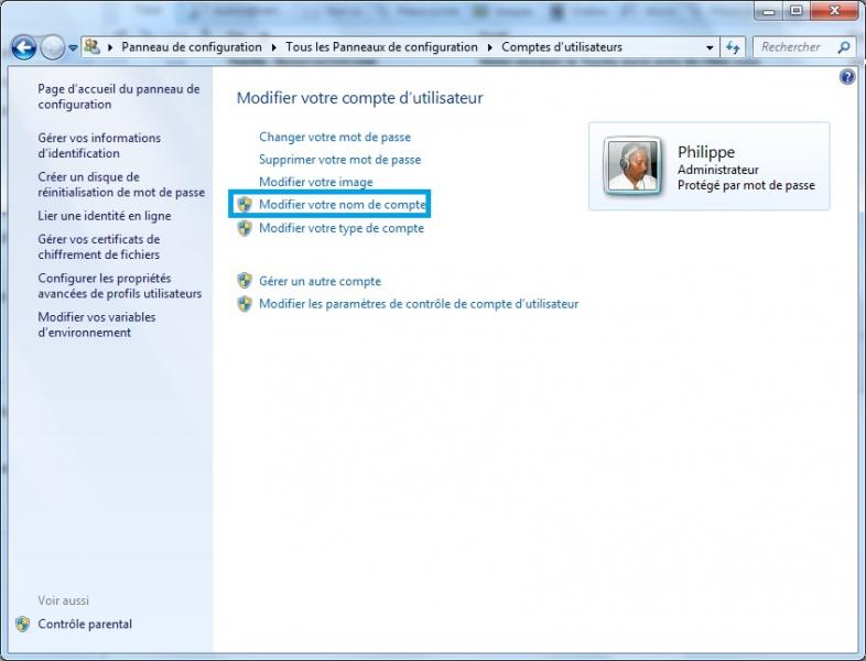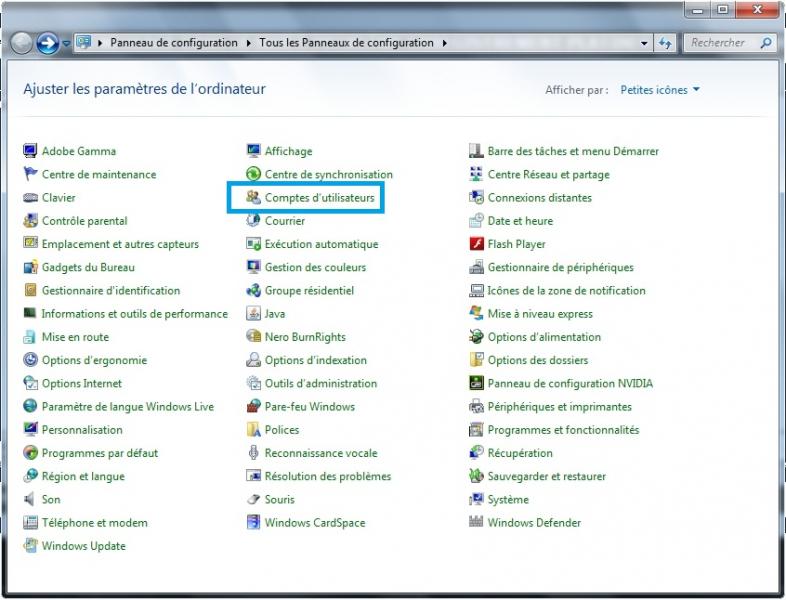 Allez sur -> Démarrer -> Panneau de configuration\Comptes d’utilisateurs