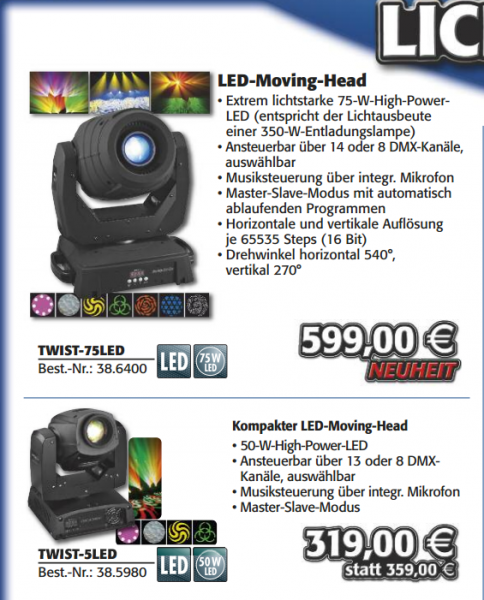 Das ist doch ein Scherz, oder? Vorallem UVP 499,- dafür bekommt man im Moment von dem großen holländischen Chinahersteller einen 50W LED Movinghead, der es in sich hat. Hab' selbst 4 davon und will die gar nicht mehr missen.