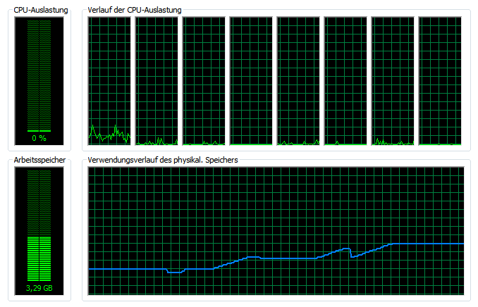 Zudem, mein Arbeitsspeicher ist bei weitem noch nicht ausgelastet. Auch hier habe ich mal einen Screen: