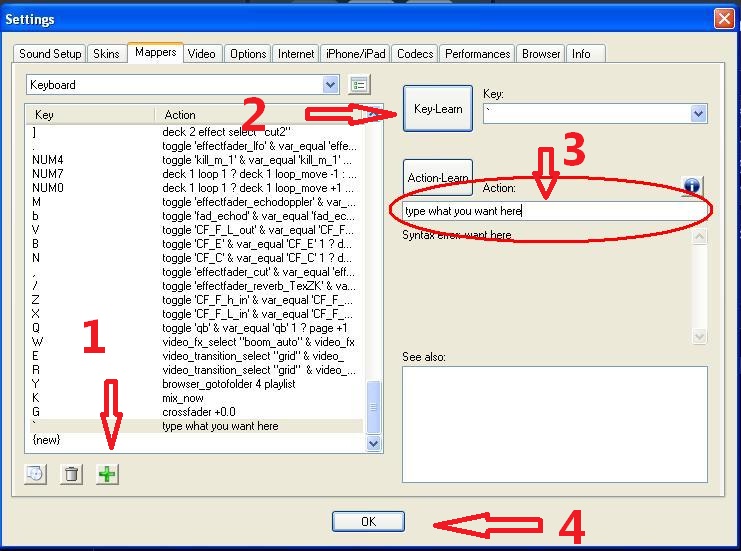 Write this action into that field and then press "ok" or "apply" (not sure how the button on this window is labled)