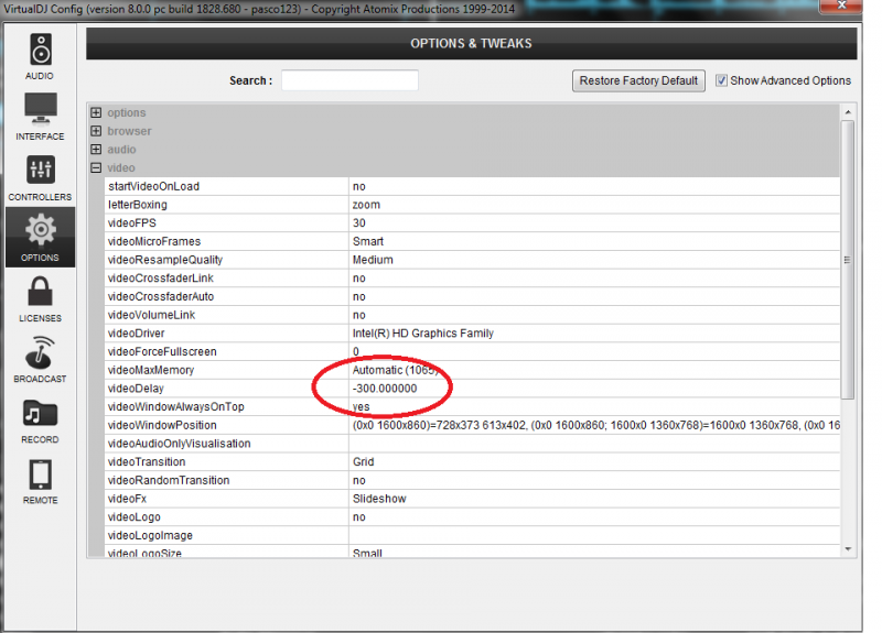 comment fait-on pour mettre du retard dans le paramètre VIDEO ---> VideoDelay ?