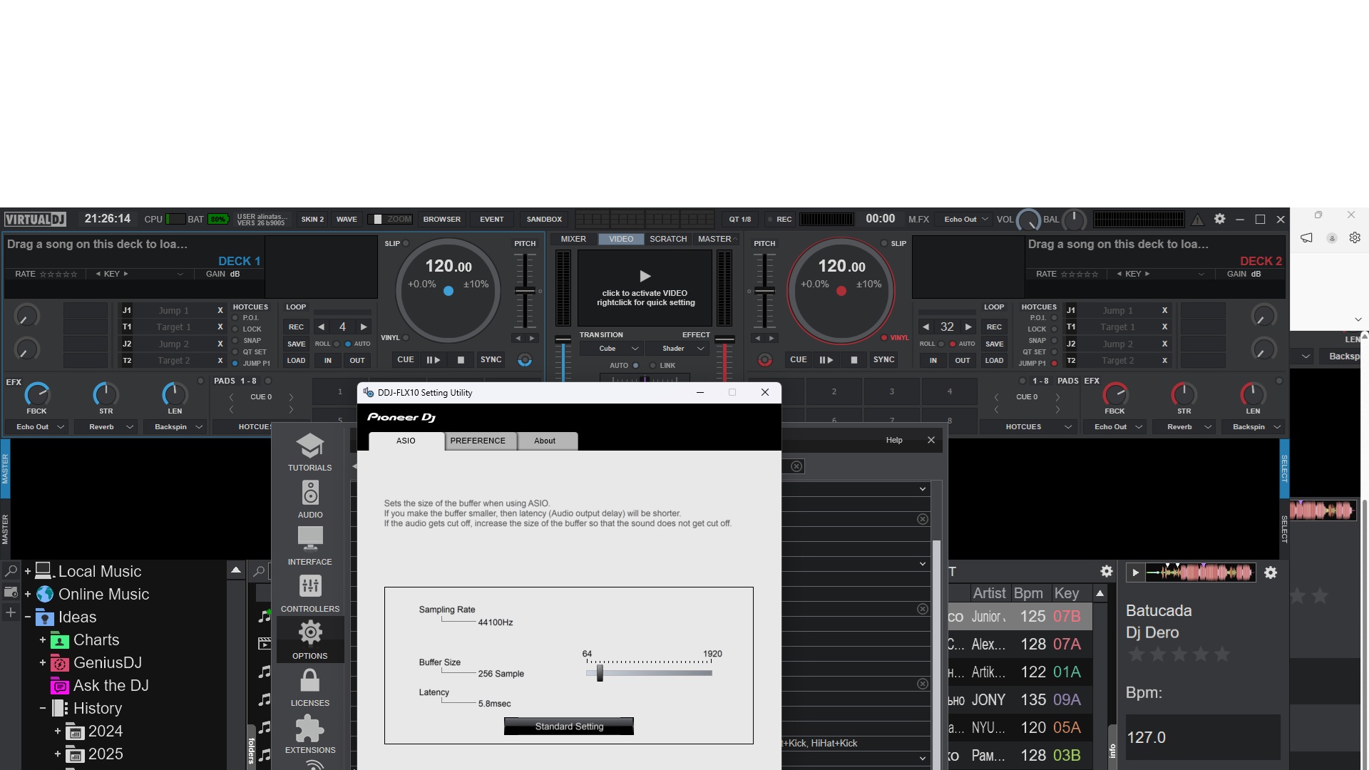 Αυτή τη στιγμή που μιλάμε, έχω την Pioneer DDJ flx 4. Δεν έχω ιδέα από τα drivers που ανέφερες... Πήγα στις ρυθμίσεις sound του windows και εν τέλει έβαλα το 4channel, 16bits, 44100hz (cd Quality). Το latency είναι στα 256. Το sample rate αυτή τη στιγμή είναι στο 44100. Το λάπτοπ μου είναι hp. HP Laptop 15-rb0xx 8giga ram 256gb. Amd Radeon TM R5 Graphics. Ελπίζω να έδωσα αρκετές πληροφορίες. Ο,τι άλλο θέλεις, πες μου να σου πω