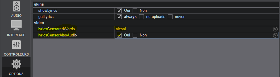 Il est possible de censuré les paroles qui défilent à l'écran, des termes sur le sexe, drogue et autres qui ne passeraient pas dans des soirées :