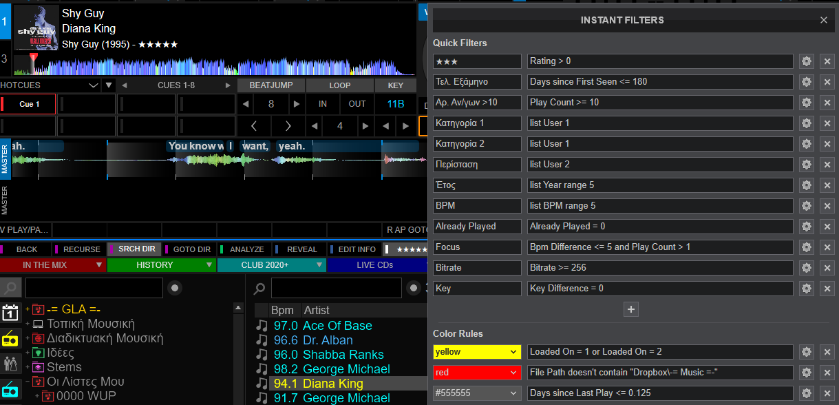 As you can see the track that's loaded on a deck is marked to turn "Yellow"