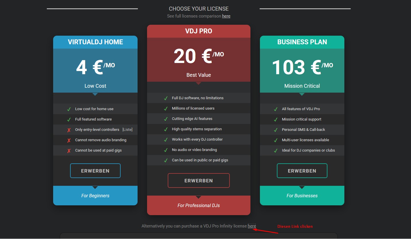 Wo kann ich VDj Pro Infinity als lifetime Version erwerben? Auf der Homepage finde ich keinen Hinweis.