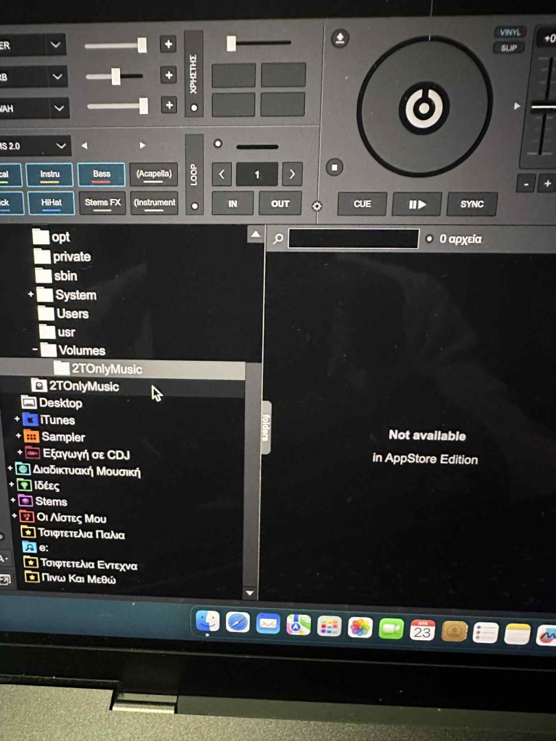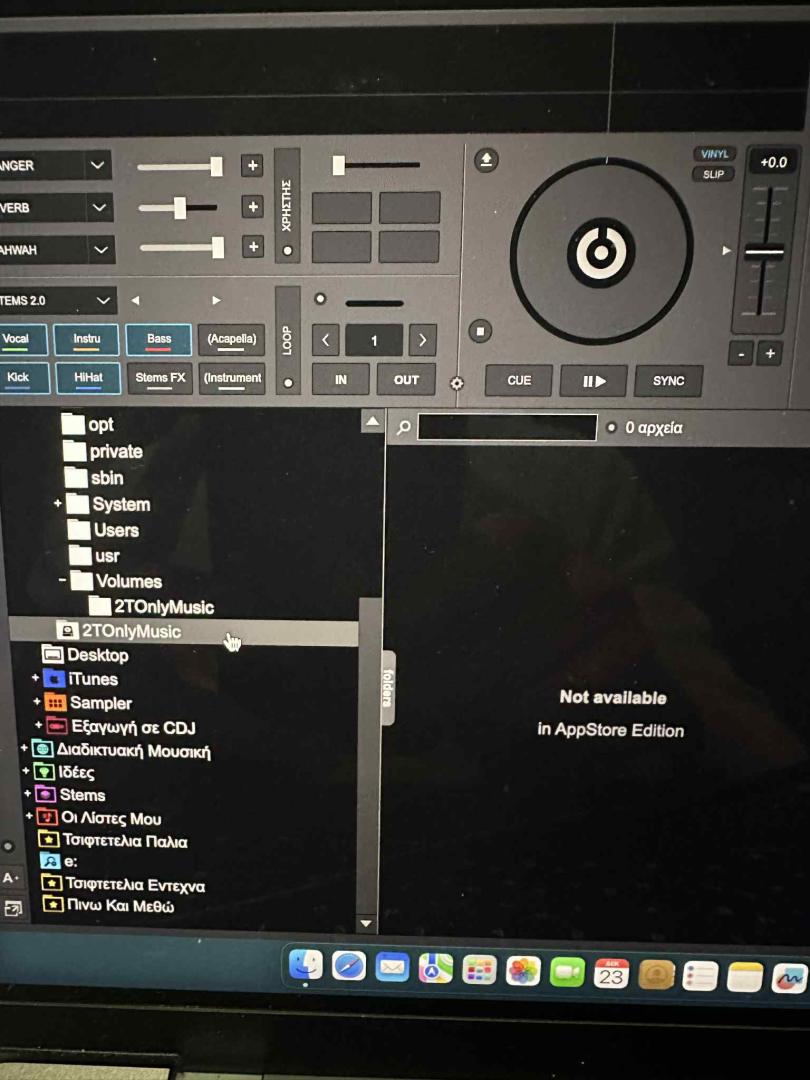 Έδωσα σε ένα φίλο κάποια απο τη μουσική μου , και έβαλε το VDJ σε ένα mac που έχει. Η μουσική είναι σε έναν εξωτερικό δίσκο, τον οποίο το mac τον βλέπει κανονικά, υποφακέλους αρχεία κτλ. Το vdj βλέπει τον δίσκο αλλά δεν βλέπει το περιεχόμενο του. Το θέμα είναι οτι ο φίλος δεν έχει ιδέα από mac, είναι φωτογράφος και το χρησιμοποιεί στην δουλειά του αλλά μέχρι εκεί. Εγω επίσης δεν έχω ιδέα από mac . Οπότε θα ήθελα τα φώτα σας.