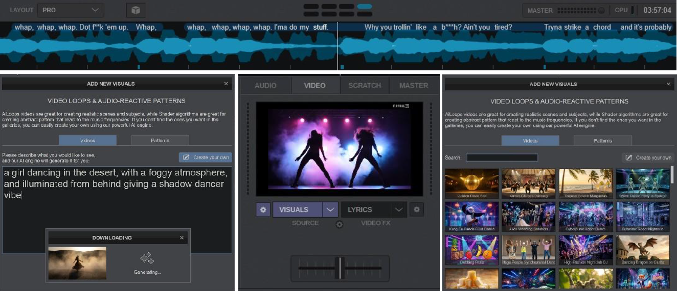E' possibile usare i tradizionali pattern ipnotici reattivi all’audio (Shader), che ora possono essere generati dal motore AI partendo da semplici prompt descrittivi.