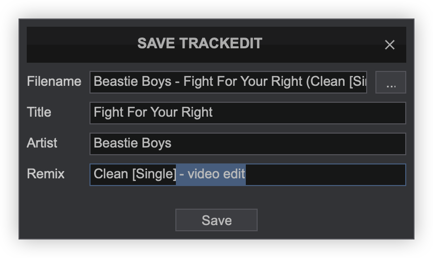 - SAVE. Creates a .vdjedit file in the same folder as the original track and a special icon will be applied to this file (see File Icons)