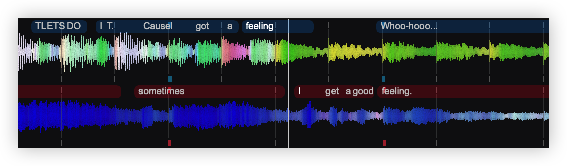 - LYRICS OVERLAY. Displays the lyrics of the track while using Stems 2.0 (when available) in relation to the waveform. Lyrics can be edited in the Lyrics Editor or optionally turned off by going to Settings Options showLyrics and selecting No.